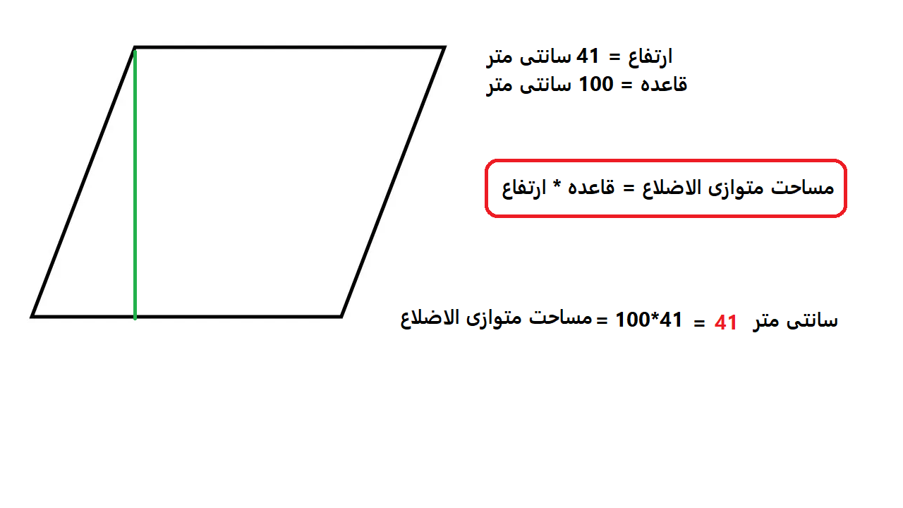 (راهنمایی: مساحت متوازیاضلاع برابر است با قاعده x ارتفاع)