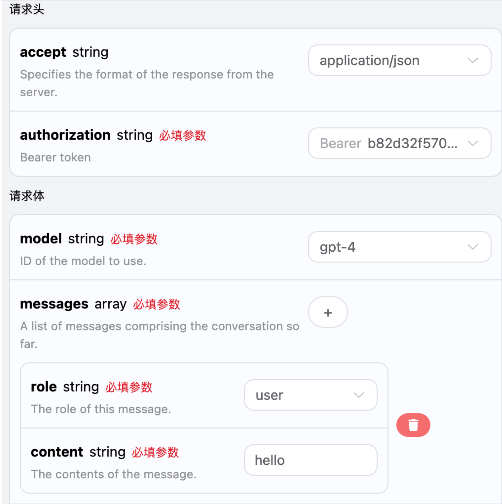 jsonObject.put("messages", [{"role":"user","content":"hello"}]);