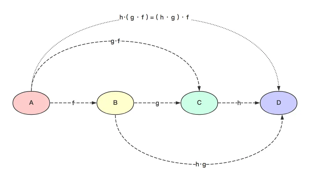 封闭律:如果存在态射 f, g,则必然存在 h = f.g 。