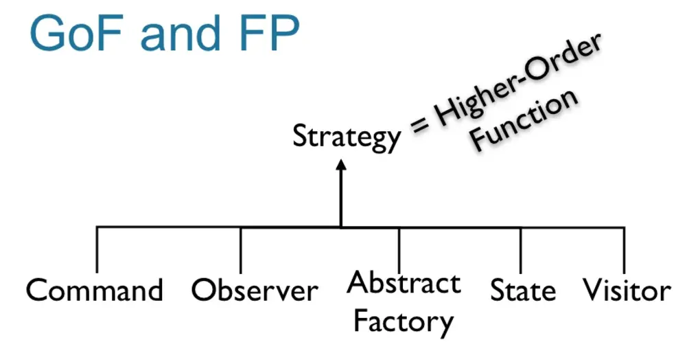 很多设计模式,在函数式编程中都可以用高阶函数来代替实现: