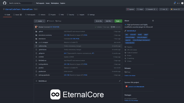 EternalCore is your ultimate companion for enhancing your Minecraft server experience. 💎 Crafted with care, EternalCore is dedicated to incorporating essential and highly practical server functions into a single plugin.