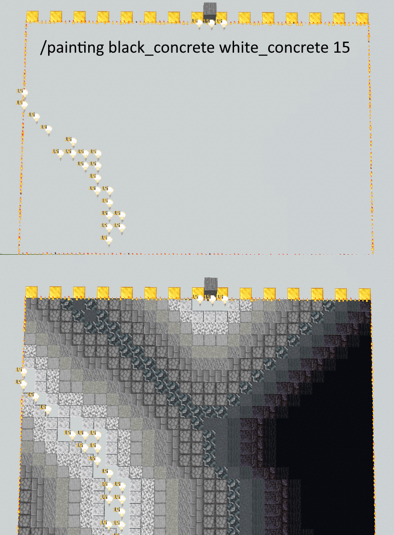 The first 2 server arguments define the start and finish block of the gradient. The 3rd argument (optional) indicates the number of blocks to place in the gradient (between 0 and 15; by default 15). The 4th argument (optional) will force the gradient to pass through the block defined in the middle