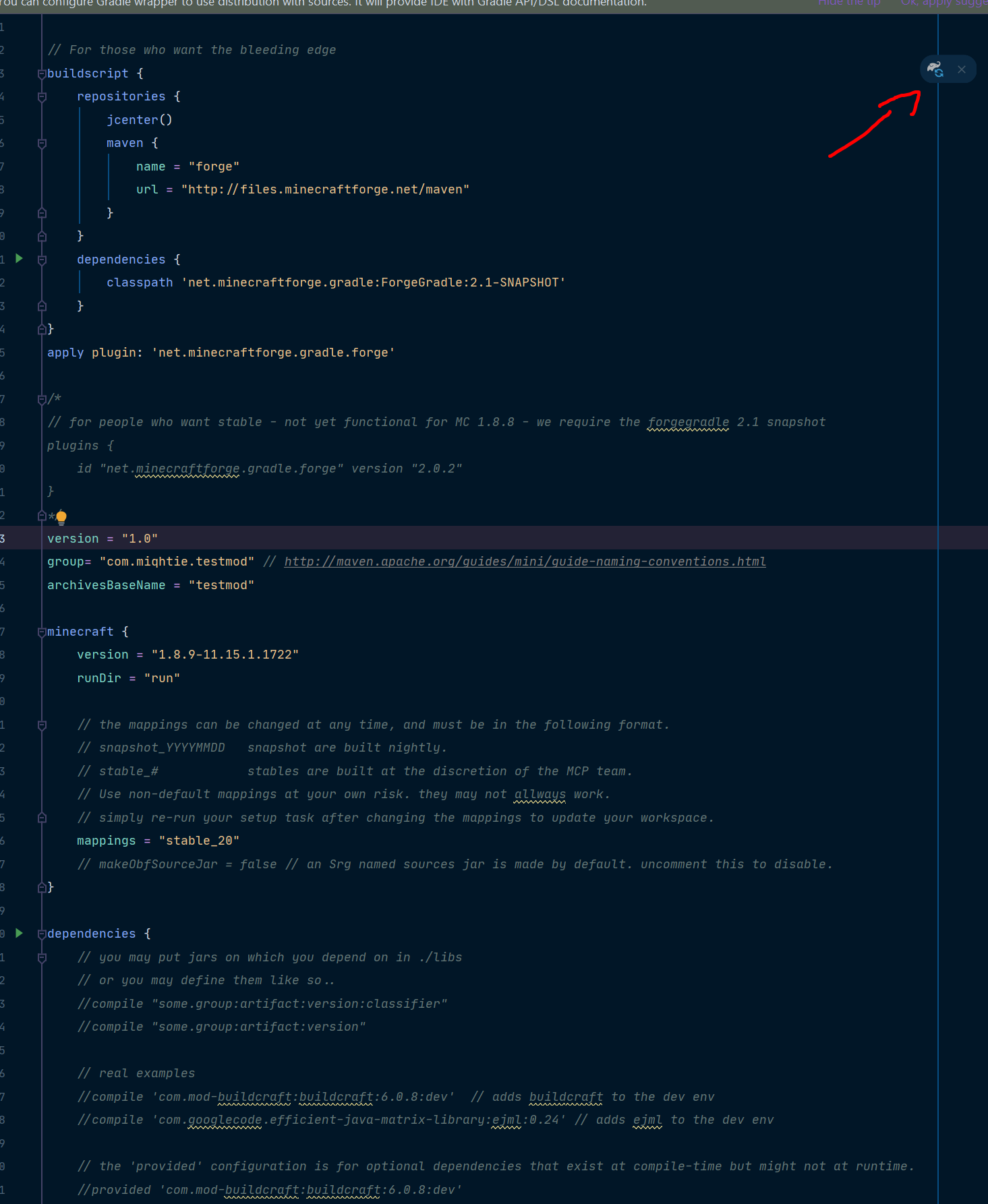 - It is good practice to reload the project every time you edit the build.gradle file. Please look at the picture below to see how to do so