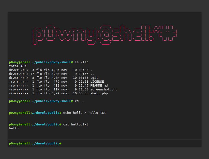 p0wny-shell is a shell script written in PHP. This tool makes it easier to perform security tests on web applications and is an ideal solution for pentesting and penetration testing. However, be cautious! This tool should only be used in test environments, as it may pose security risks in production environments.