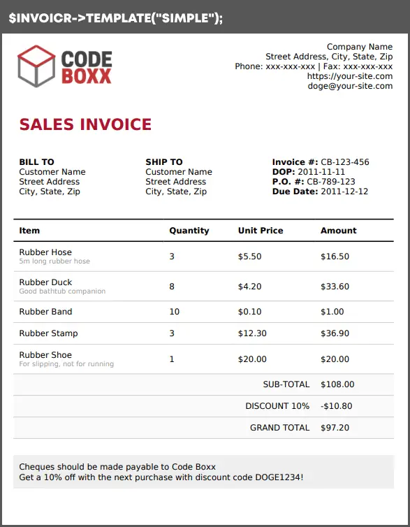 Please visit https://code-boxx.com/invoicr-php-invoice-generator for more!