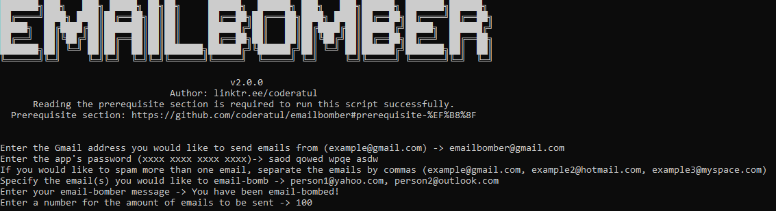 - Use App Password in Email-Bomber script (you can input it safely into the prompt without it displaying to the console).