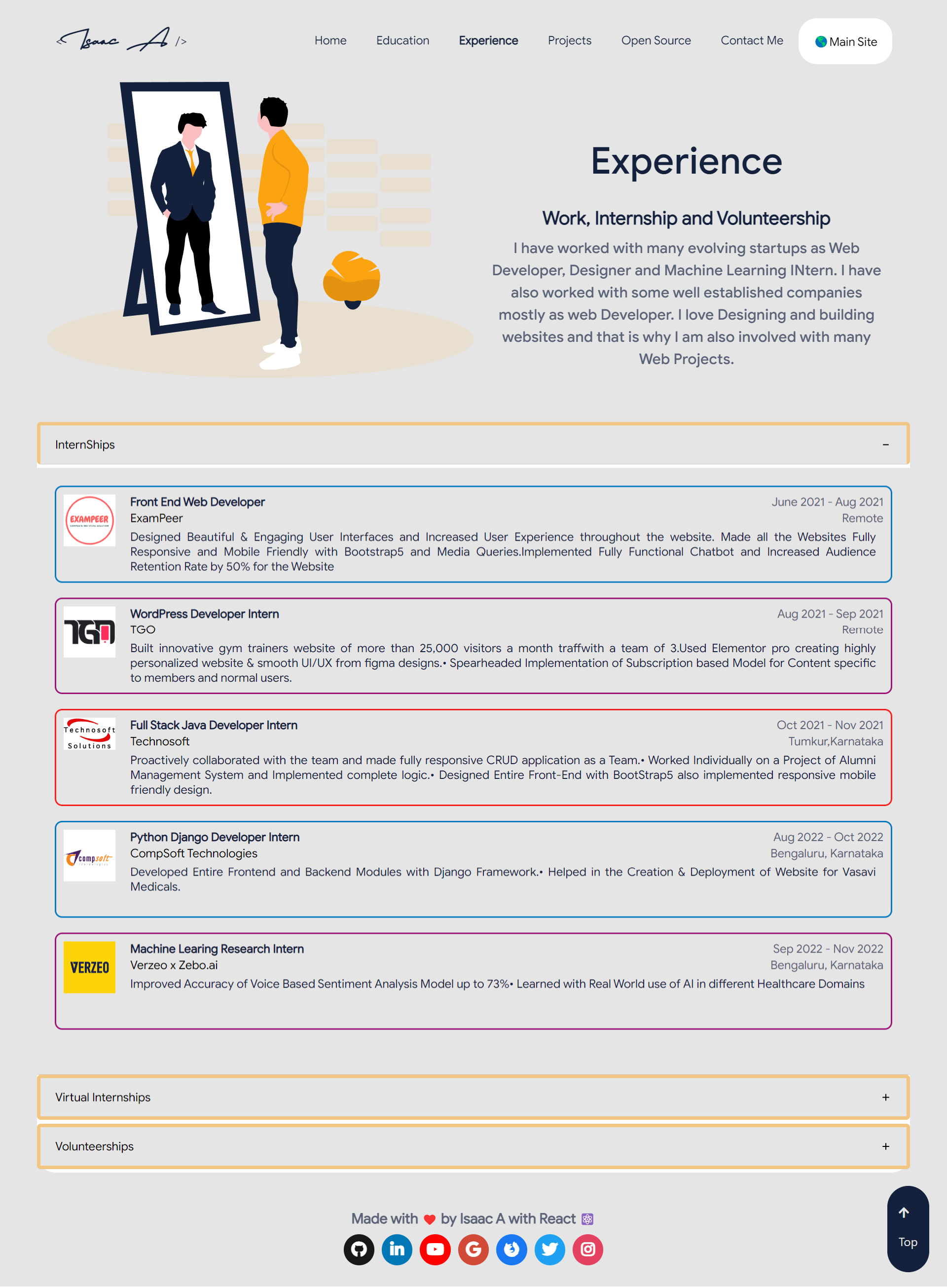 A Personal Portfolio for Myself Created with React⚛️ for Front End with CSS and JS Showcasing Skill and Experience in the Field inspired by
