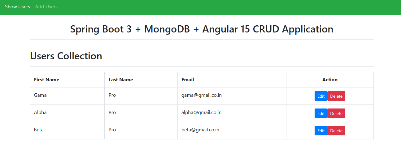 We will build a full-stack web application that is a basic User Management Application with CRUD features:
