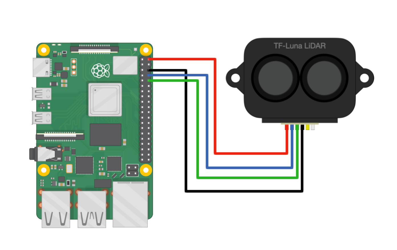 The TF-Luna can be wired to the Raspberry Pi via the mini UART port: