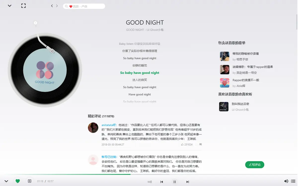 歌词自动同步滚动高亮,滚动选择歌词切换播放时间, 歌词逐字播放.
