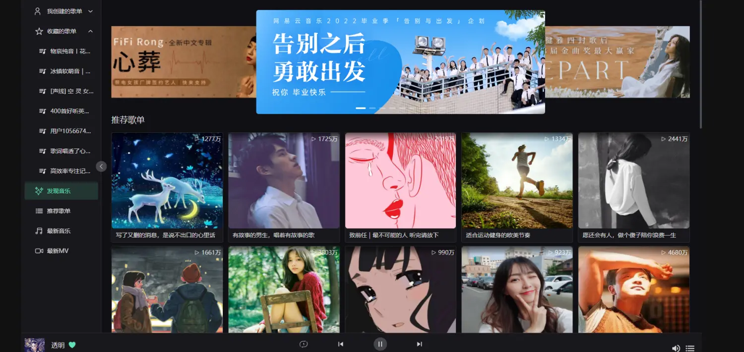 添加喜欢的音乐,获取我创建的歌单和收藏的歌单.