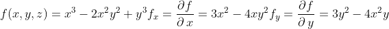 f = 0, fx = 1/(1-π2) = −0.112744, fy = 0