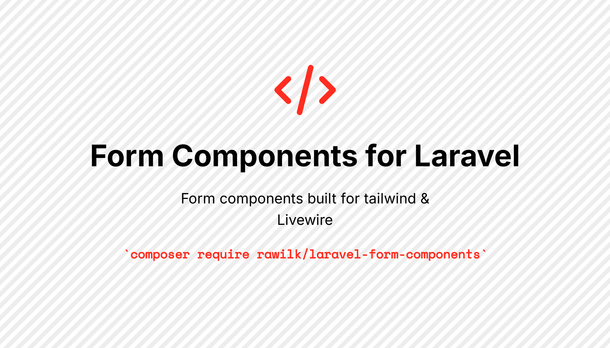 Form Components for Laravel provides common form components to help build forms faster using Tailwind CSS. Supports validation, old form values, and wire:model.