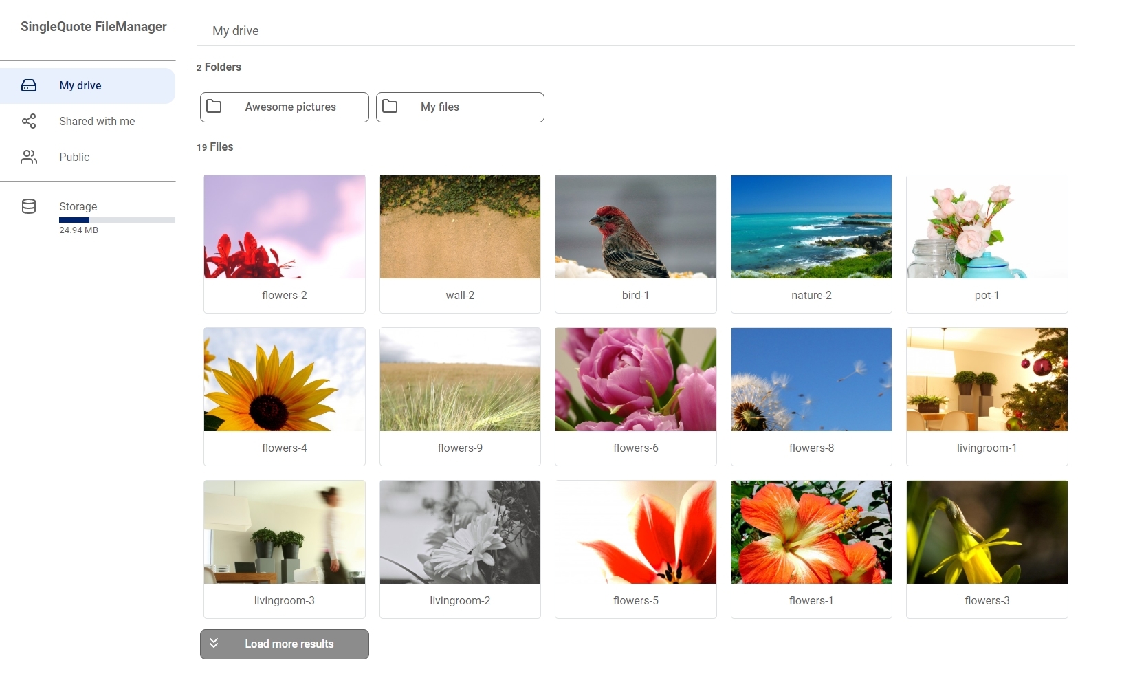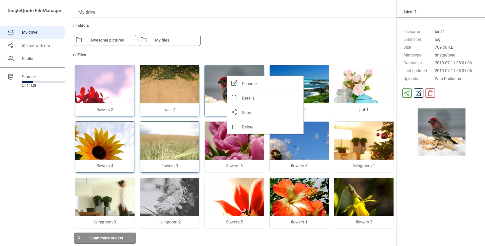 This package contains a light weight filemanager. It is build for easy intergration and easy to customize. It works only with laravel and uses a lot of laravels code. The code is clean and we want to keep it this way. offcourse this package will grow into an awesome filemanager where you can manage your files the way you want.