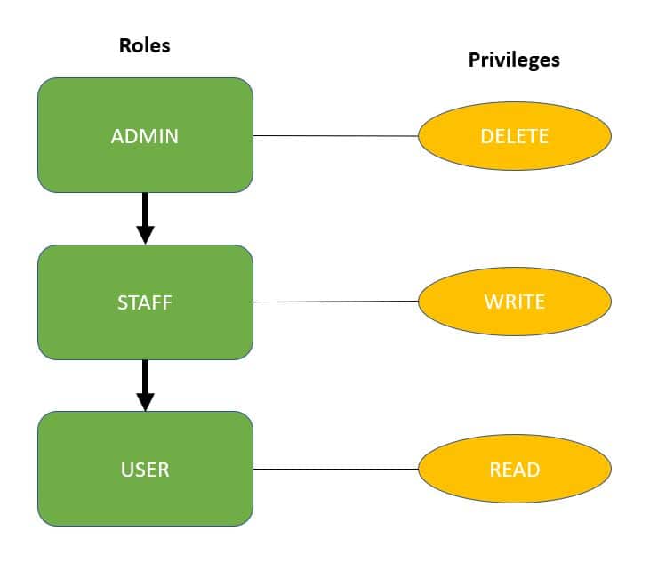 So, assigning the role ADMIN automatically gives the user the privileges of both the STAFF and USER roles.