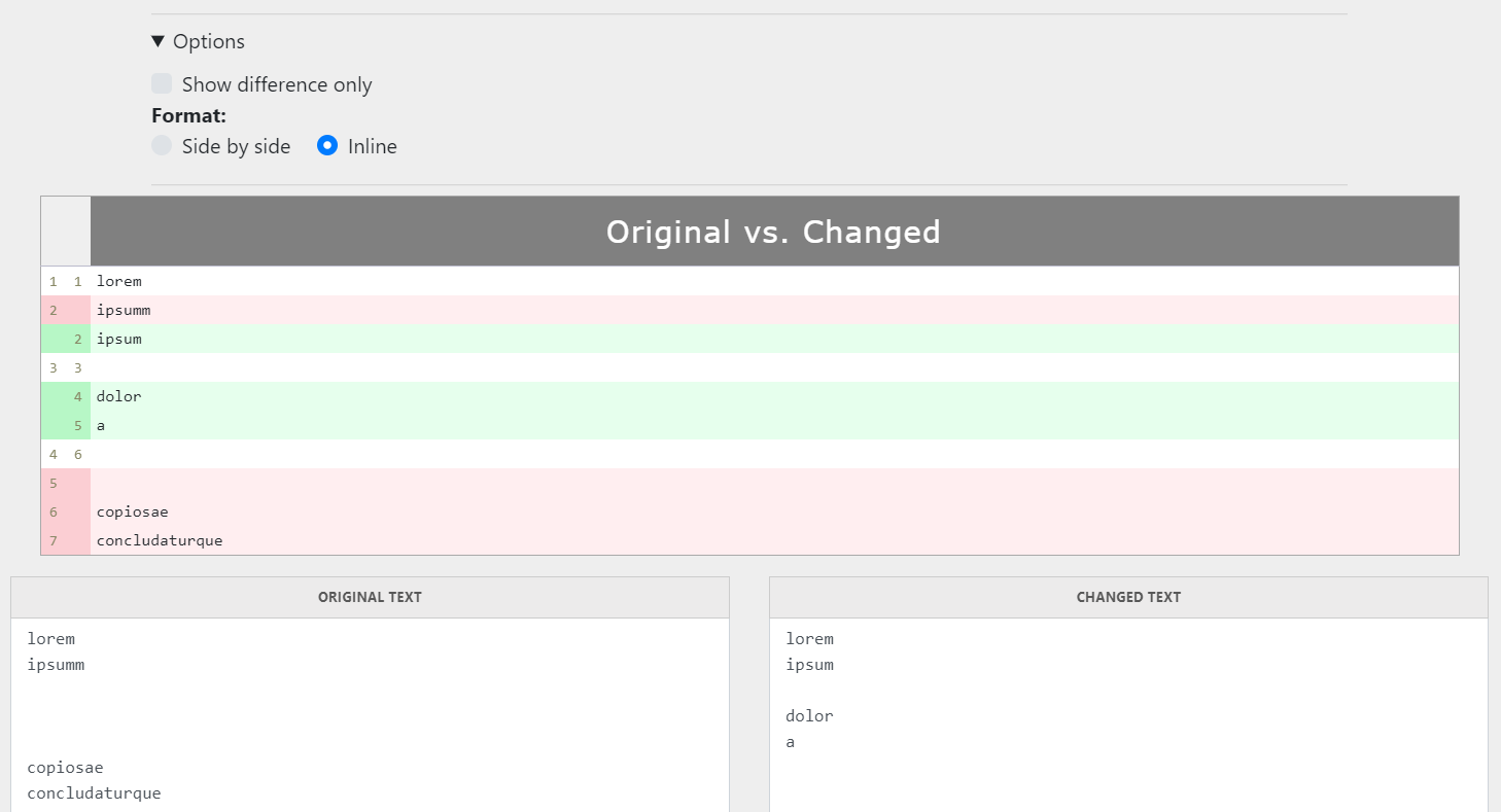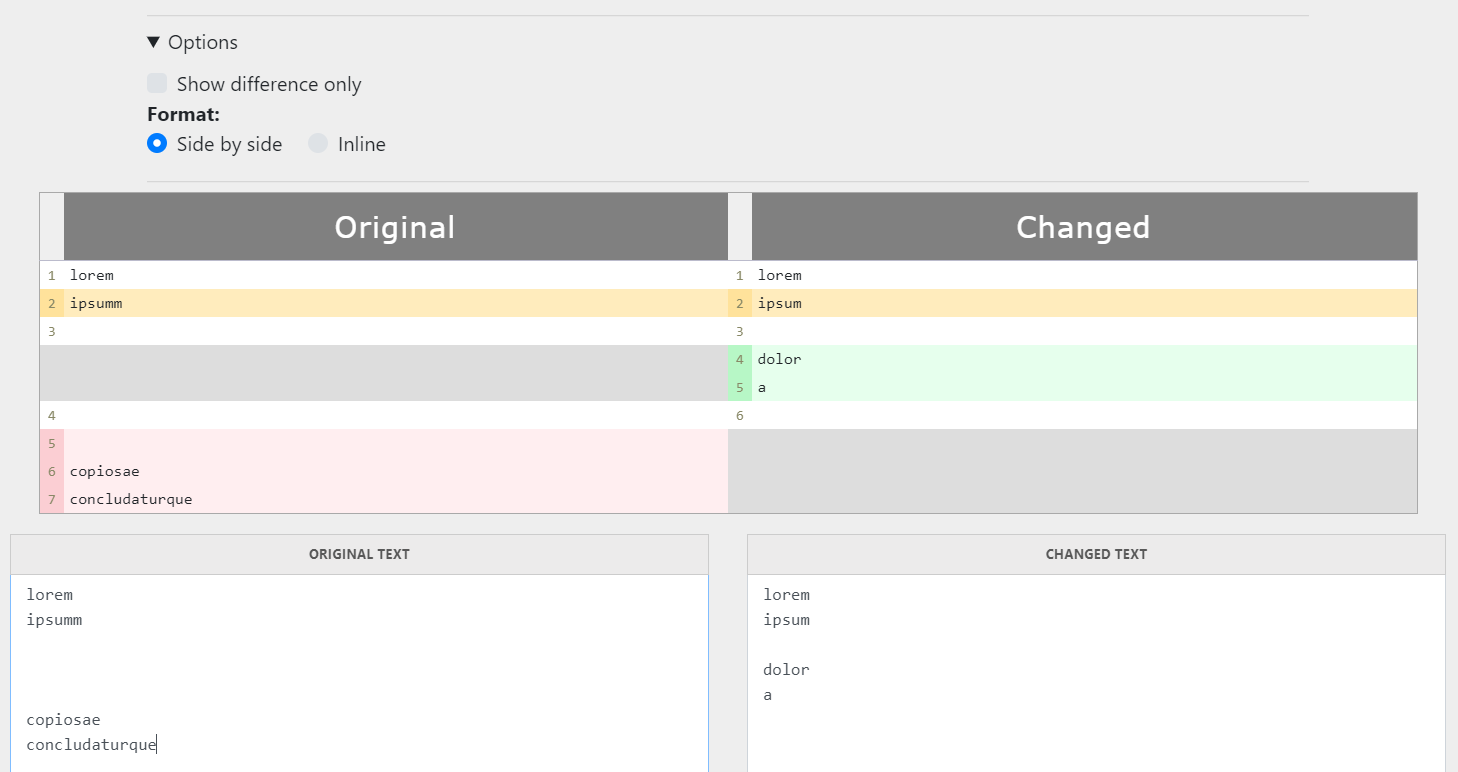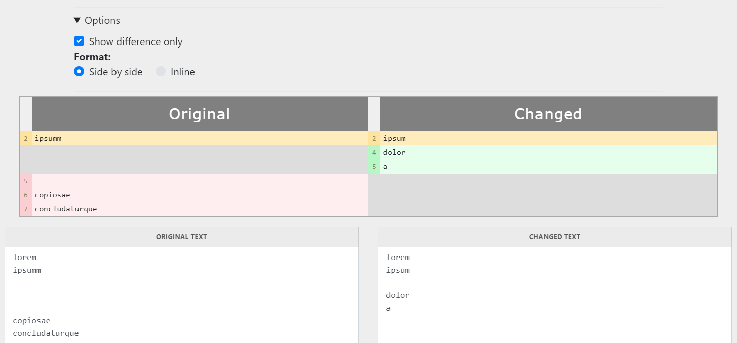 - Show difference only - choose if you want to display only difference or whole diff (with not modified lines)