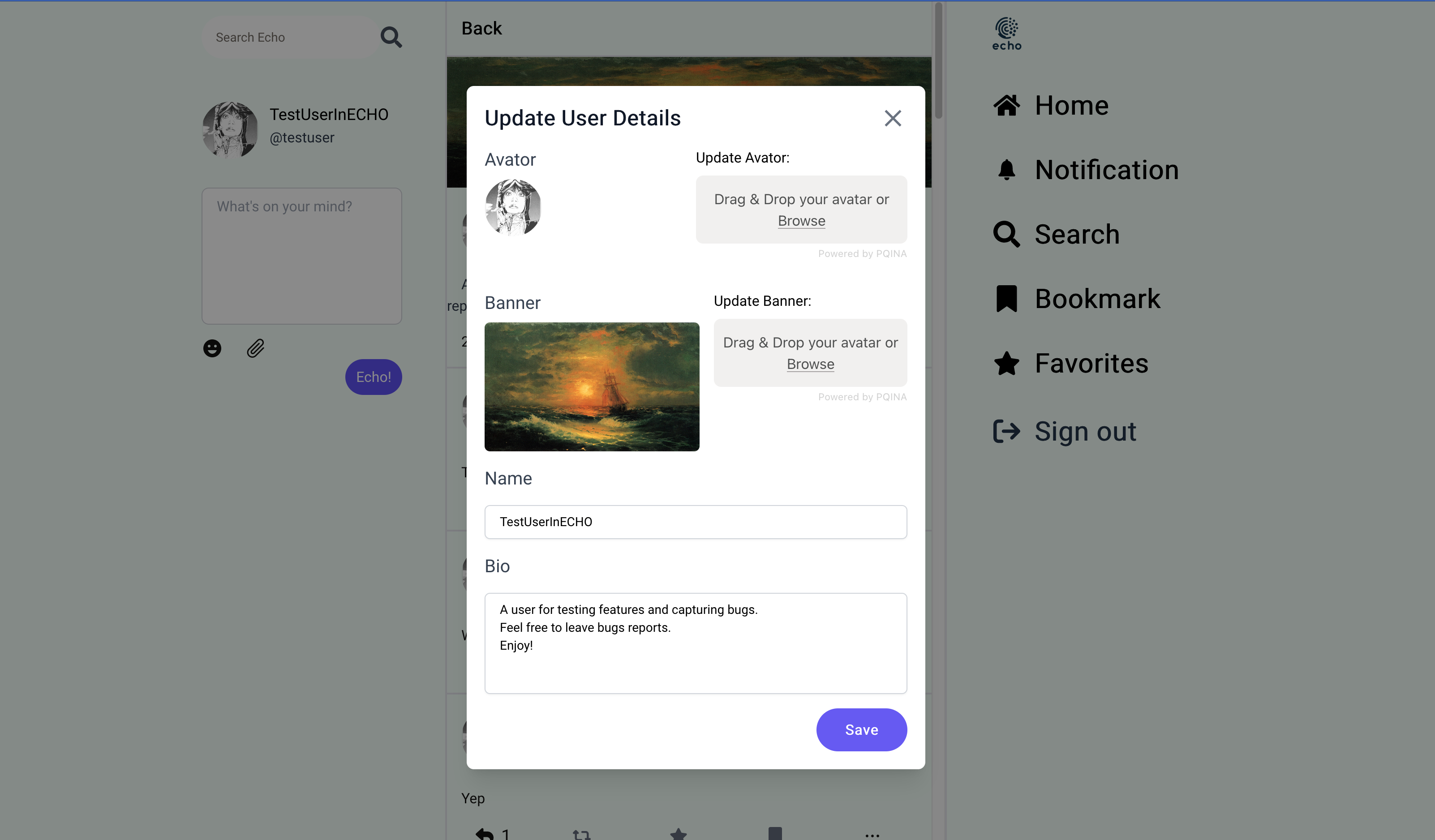 Echo Social is designed to be a social networking platform where users can freely express themselves, connect with others, and create vibrant communities. Inspired by Mastodon, it aims to provide a user-centric experience.